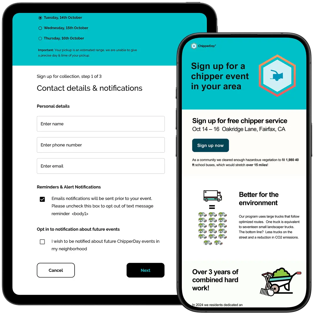 “ChipperDay software allows us to do more fire fuels removal without adding significant administrative time or cost. The software has automated what used to take hours of phone calls and manual scheduling. It has simplified the registration process and reduced resident questions to almost none.”